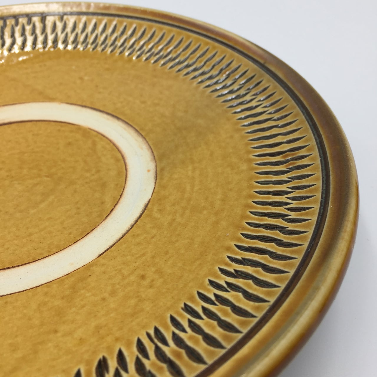 小鹿田焼 小袋窯 7寸皿 中抜き飛びかんな うるか飴 直径約21cm 中皿 陶器 和食器 民藝