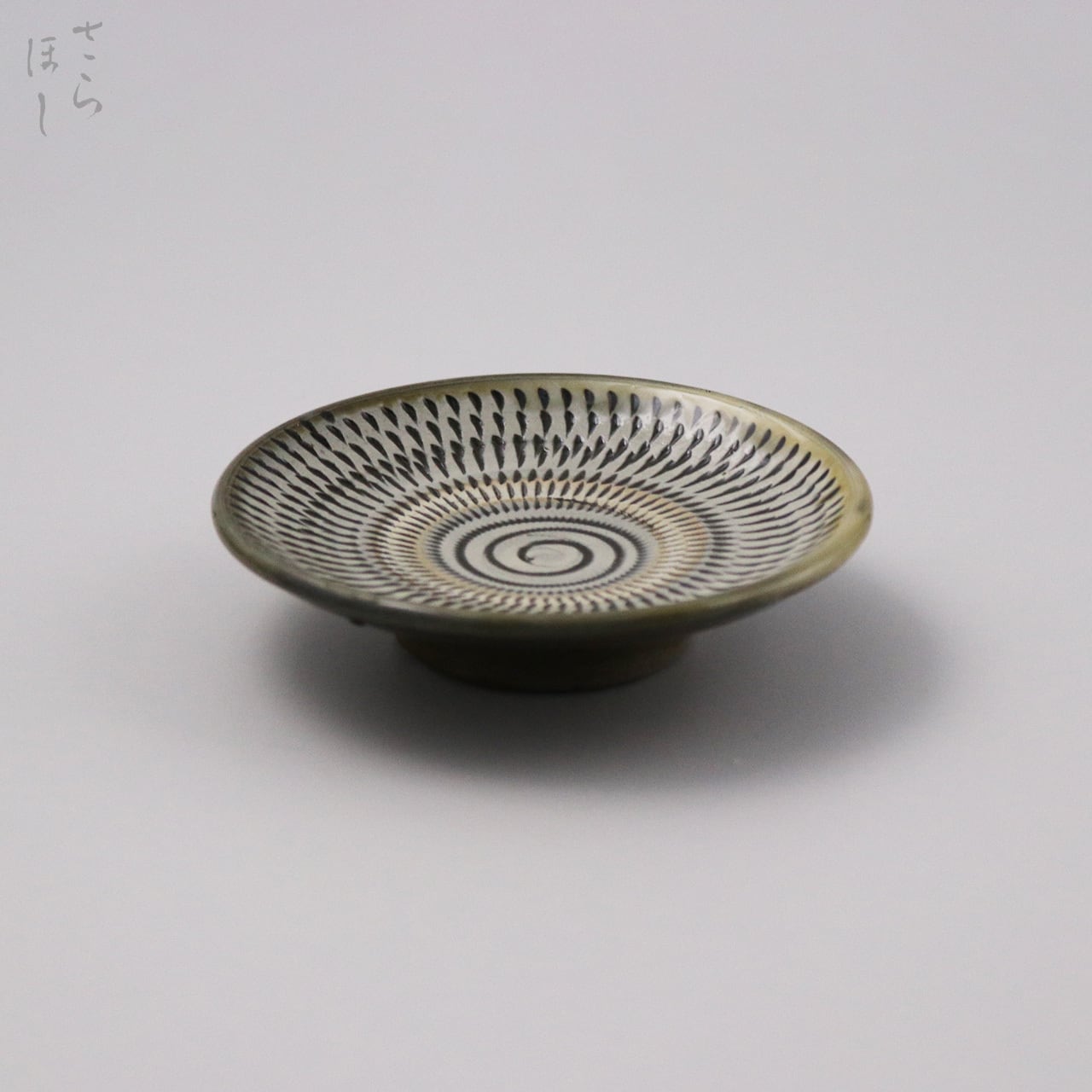 小鹿田焼 小袋窯 3寸皿 飛びかんな 白 直径約9.5cm 豆皿 陶器 和食器 民藝