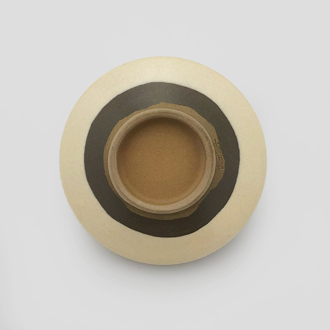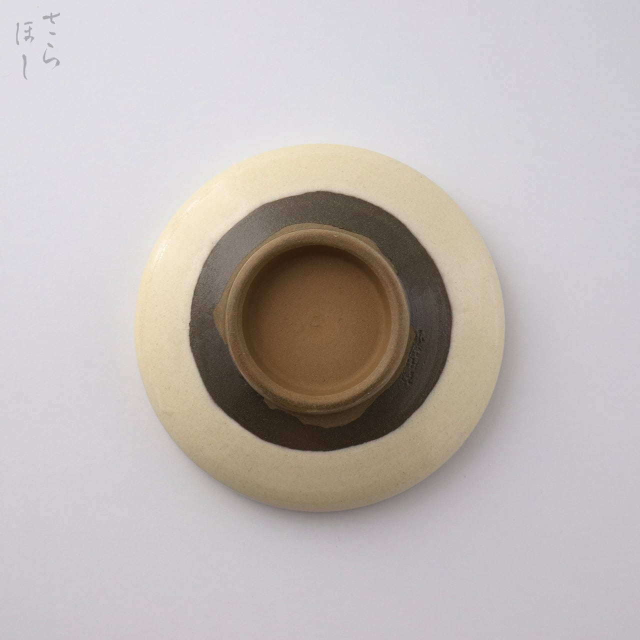 ・お皿等、窯で重ねて焼くものには、中央付近に白い円(目剥ぎ)があるものと無いものがあります。ご注文の際は目剥ぎの有無をご指定いただけません。ご了承ください。重なった部分がくっついてしまわないよう、釉薬を剥がした跡が白い円となって現れたものす。一番上で焼かれたものや、重ねずに焼かれたものには目剥ぎがありません。