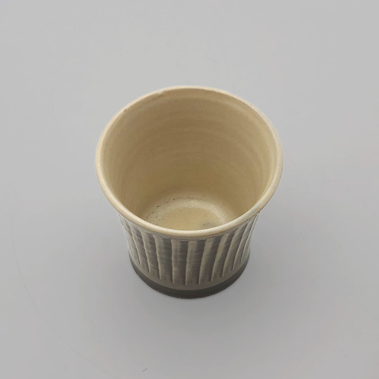 小鹿田焼(おんたやき)の高さが約9cmの持ち手がない焼酎フリーカップです。