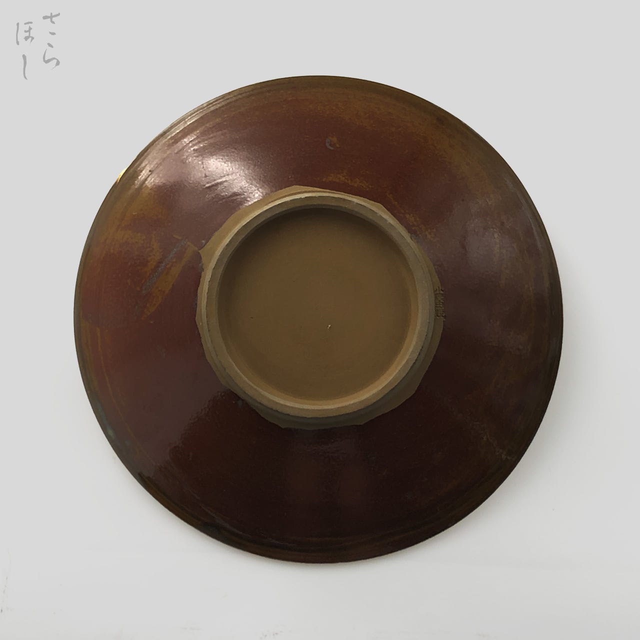 ・お皿等、窯で重ねて焼くものには、中央付近に白い円(目剥ぎ)があるものと無いものがあります。ご注文の際は目剥ぎの有無をご指定いただけません。ご了承ください。重なった部分がくっついてしまわないよう、釉薬を剥がした跡が白い円となって現れたものす。一番上で焼かれたものや、重ねずに焼かれたものには目剥ぎがありません。